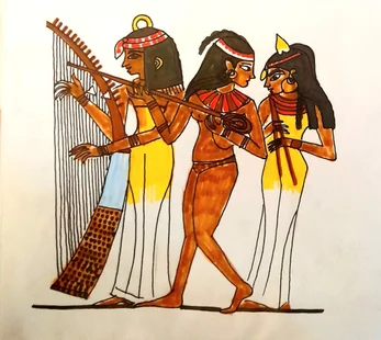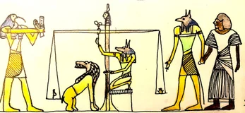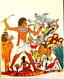 Dieux, Déesses, Pharaons-nes (Mâat, Isis, Osiris, Seth...), rituels du quotidien (jugement dernier, pêche, danse, musique,...), symboles (faucon d'or, cobra royal...)