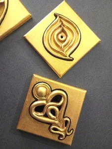 Caducée, Arbre de vie, Désir, Liberté, Responsabilité, Terre Mère, Vision, Lotus, Illusion, Maternité, Kundalini, Yantra, Oiseau Intérieur, Pilier de Djeh, Hari Hara...