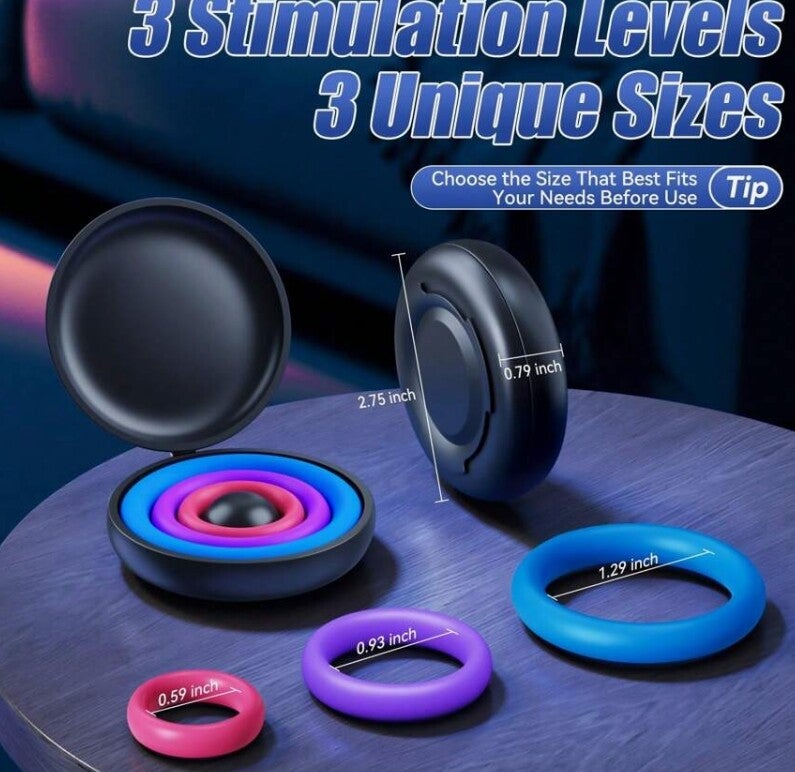 - 3 Anneaux de Silicone.Dispositif de stimulation sexuelle multicolore. 3 tailles différentes d'anneaux. Améliorer la durabilité et la résistance. Jouet Sexuel pour homme.