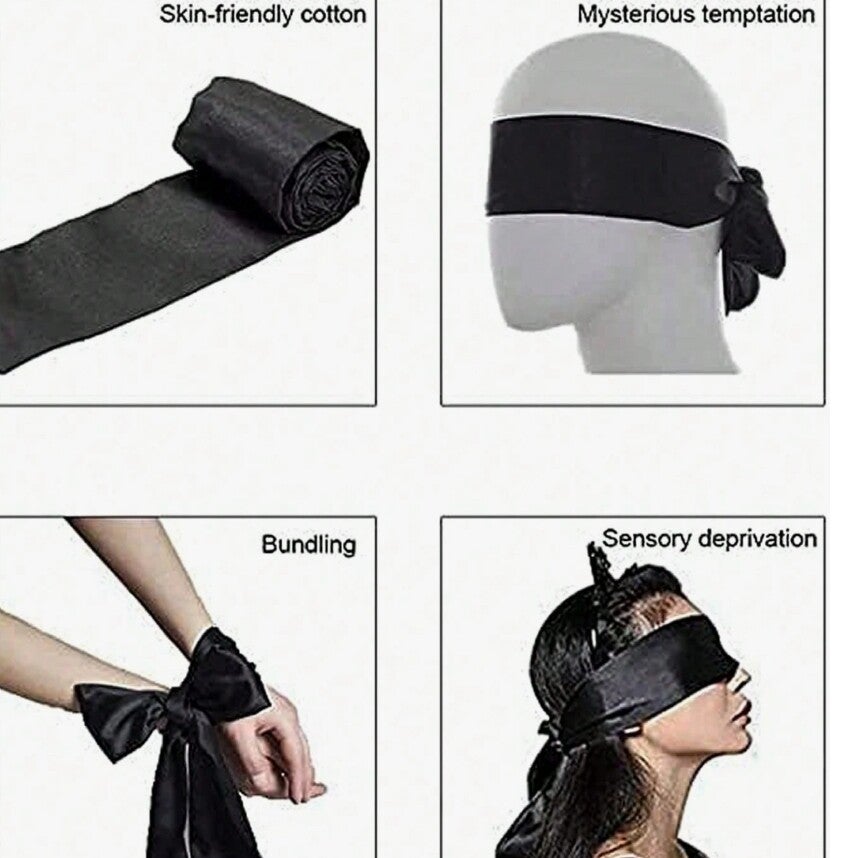 - 1 Bandeau sexy,masque pour les yeux, accessoire sensoriel, bondage. Couleur : Noir et Rouge. Dimensions : 1,35 mètres (longueur) x 6 cm (largeur)